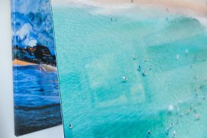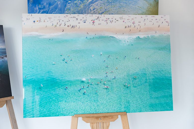 A massive 60 x 40 inch wide (150cm x 100cm) aerial photo of the Bondi Surf School taken in summer. Printed on the Kodak Metallic paper and then facemounted to 4.5mm optical grade acrylic with a diamond polished edge. No photo does it justice.