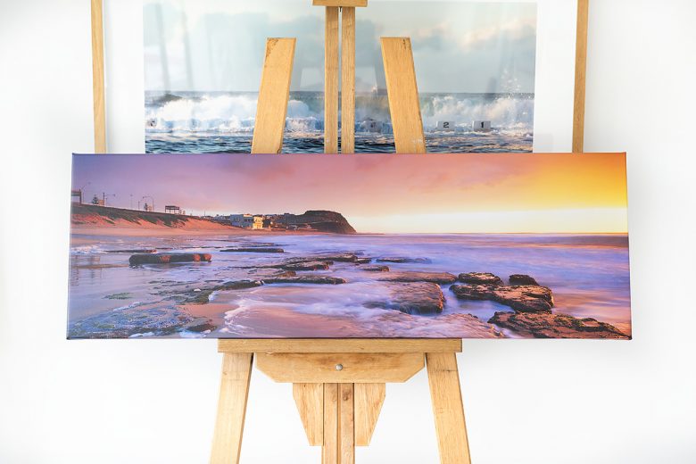 A 50 inch wide (127cm x 40cm) sunrise of Bar beach in Newcastle, NSW. Printed on our premium canvas and stretched ready to hang.