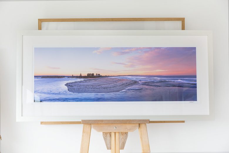A 50 inch wide (127cm x 40cm) photo of The Entrance on the Central Coast of NSW. Printed on our Kodak Metallic Paper and framed in a Brushed Silver Frame.