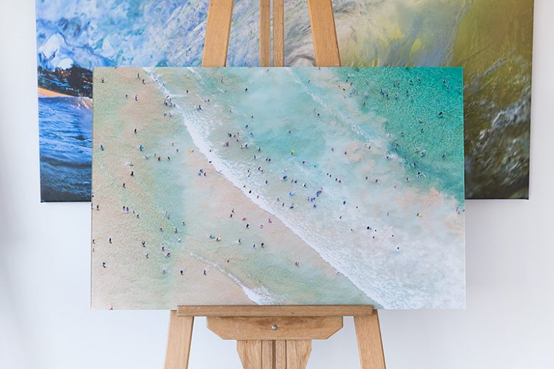 A 40×26 inch wide (101cm x 66cm) aerial photo swimmers at Freshwater Beach on Sydney’s, Northern Beach.