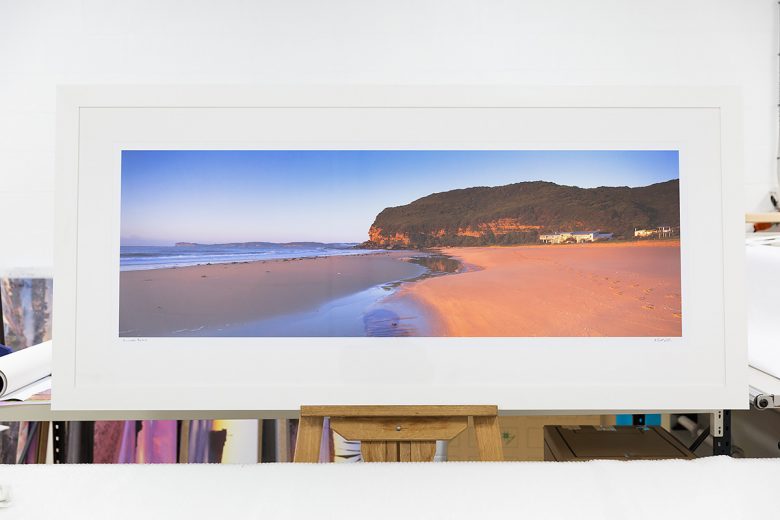 A 60 inch wide (150cm x 50cm) photo of Killcare Beach on the Central Coast of NSW. Printed on Kodak Metallic paper and framed in a Black Frame.