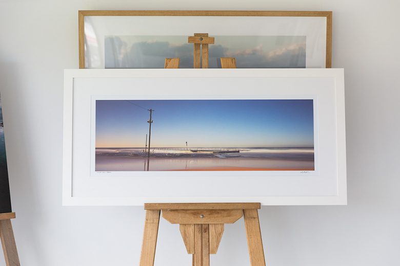 A 100 x 33 cm wide photo of Mona Vale Ocean Baths on Sydney’s Northern Beaches. Framed in white, hand titled and signed and delivered to Sydney. Image code NB102