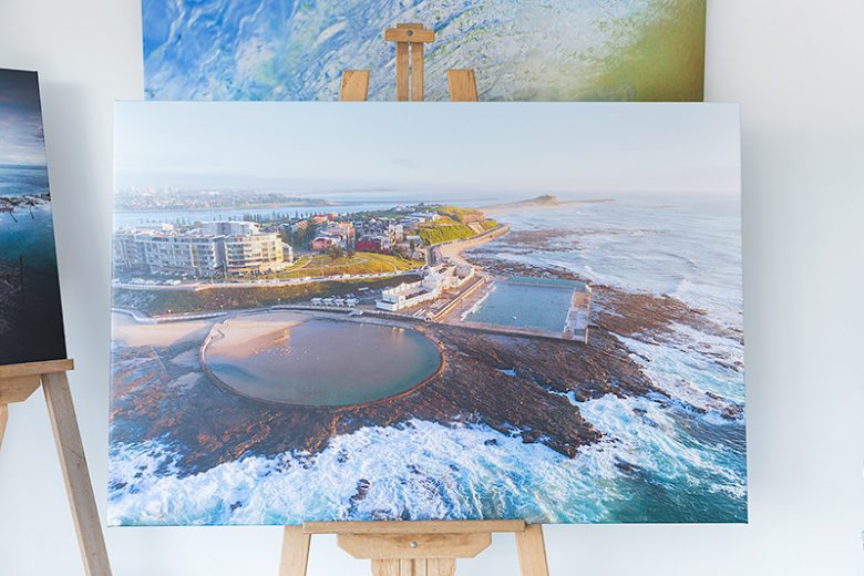 A 60×40 inch wide (152cm x 101cm) aerial photo of Newcastle Ocean Baths.