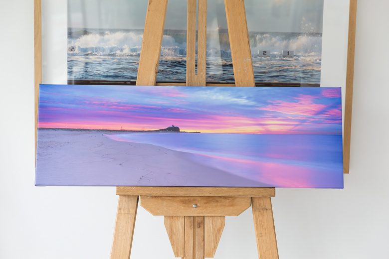 A 40 inch wide (101cm x 33cm) sunrise of Nobbys beach in Newcastle, NSW. Printed on our premium canvas and stretched ready to hang.