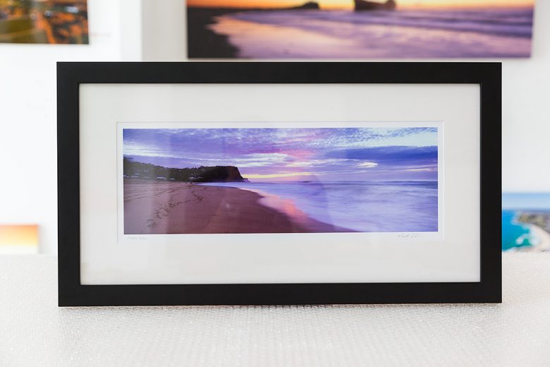 A 12 inch wide (30cm x 10cm) photo of North Avoca on the Central Coast of NSW framed in a black frame.