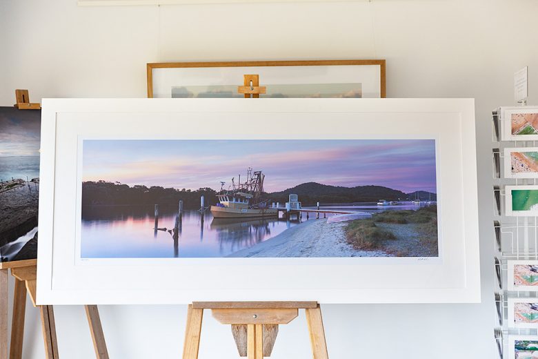 Our stunning photo of the old Woy Woy fishing boat that was moored along the river bank that is no longer there. Printed on metallic paper, mounted to Aluminium and framed in White. This is part of the large collection of images that you can find on the walls of the Brisbane Waters Private Hospital in Woy Woy.